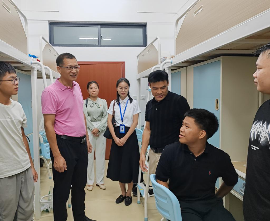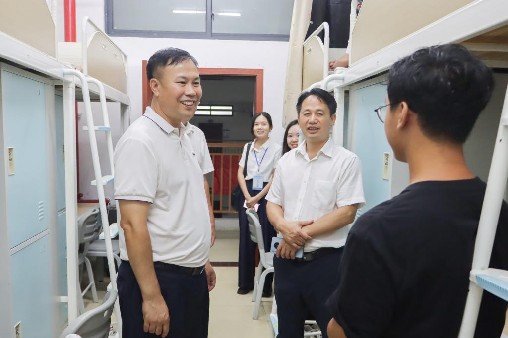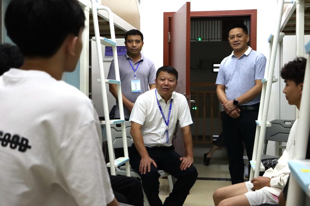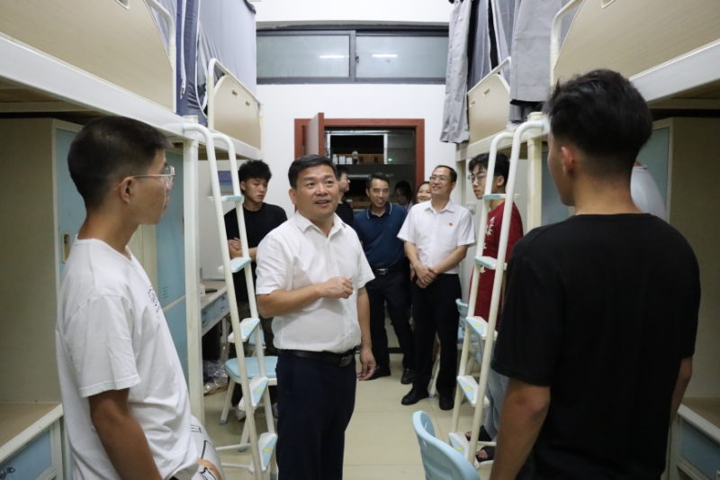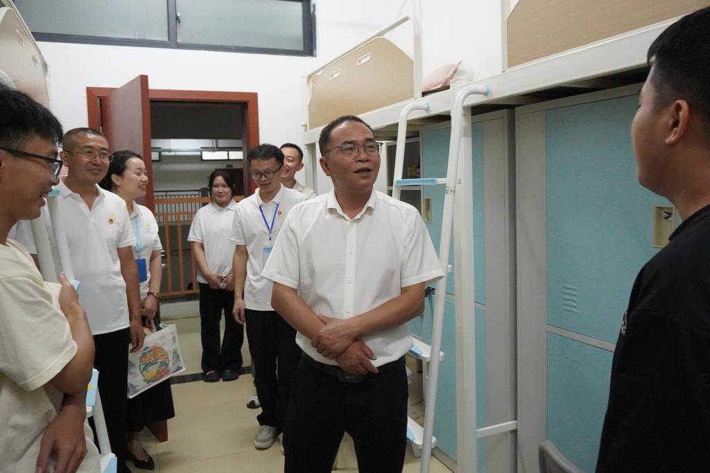11日晚校领导深入宿舍,为新生“安家”注入暖心能量🧫。校党委书记马敏⛓️💥,党委副书记、校长李振科带领学校领导班子成员走访新生宿舍和西苑餐厅。他们轻敲每一扇宿舍门👨🏼,与新生及亲切交谈➔,仔细询问住宿是否习惯💖、生活用品是否齐全🧑🏿🦲,还耐心解答新生关于校园生活的种种疑问。在西苑餐厅,校领导们认真查看饭菜质量与种类,叮嘱食堂各窗口要确保饮食安全与营养均衡,让新生们吃得放心👩🏿🎤、舒心🕕。