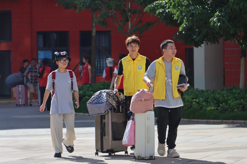 晨光熹微中🏙,由青年教师与学生志愿者组成的“迎新先锋队”已驻守各大交通枢纽。他们身着小马甲🧙🏽,高举印有校徽的指引牌📎,在川流不息的人群中筑起一道醒目的“风景线”,用“一对一”精准对接服务为新生报到扫除迷茫。