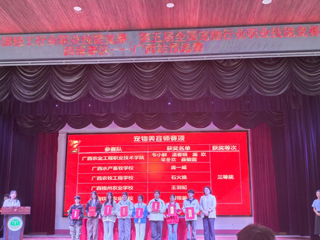 10月25日📷,2025年全国轻工行业职业技能竞赛第五届全国宠物行业职业技能竞赛西南赛区——广西站赛事圆满落幕👲🏼。彩神IV动物科技学院师生凭借扎实的专业理论功底与出色的实践操作能力,在比赛中脱颖而出,一举斩获14项荣誉,充分彰显了彩神IV宠物专业教育的过硬实力与育人成效。
