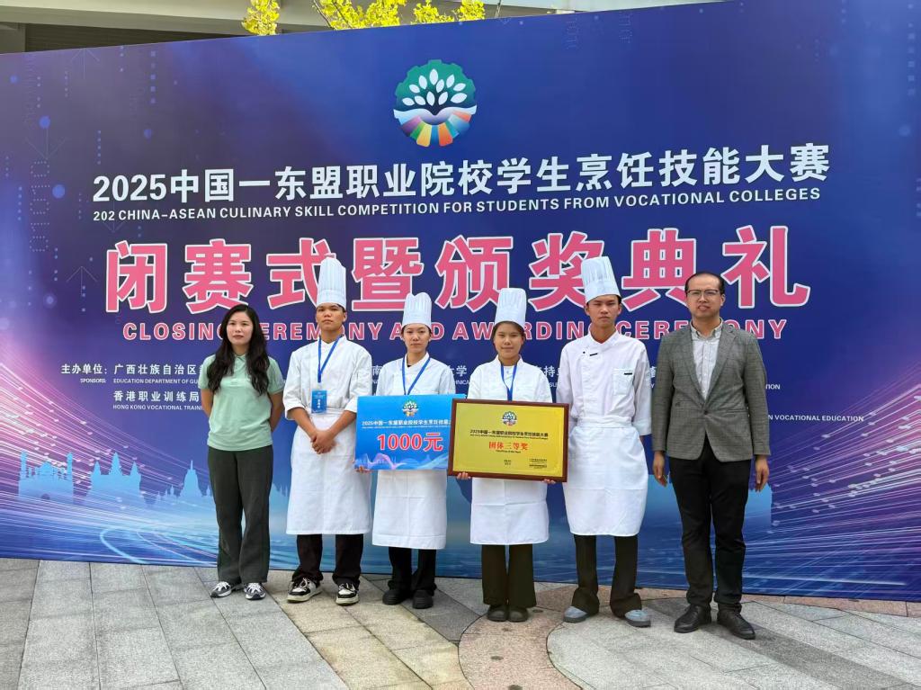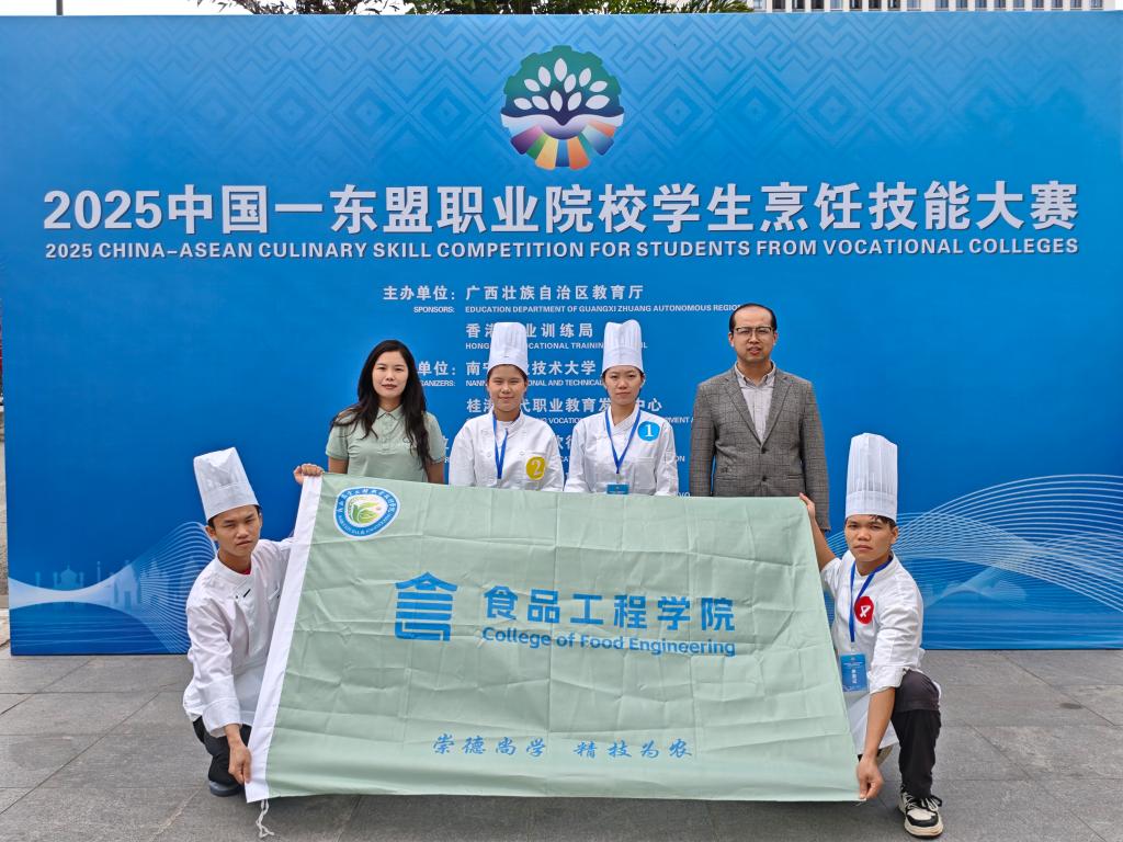 10月22日至24日,2025中国—东盟职业院校学生烹饪技能大赛在南宁职业技术大学举行。本届大赛以“技能铸就梦想,美食连接友谊”为主题🟰,吸引了来自包括香港在内的我国11个省级行政区,以及泰国、越南🤹🏻、印尼🤾🏼♂️、老挝等国家的共40支代表队同台竞技。彩神IV食品工程学院学子凭借扎实的专业技能和出色的现场表现,从众多参赛队伍中脱颖而出,斩获佳绩👷🏻♀️,获得一等奖1项,三等奖2项,团体三等奖1项。